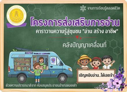 วันที่ 13 มกราคม 2569 สกร.ระดับอำเภอดอยเต่า โดยการนำของ นายดิเรก อุ่นวงษ์ ผู้อำนวยการศูนย์ส่งเสริมการเรียนรู้ระดับอำเภอดอยเต่า พร้อมด้วยบุคลากร และนักศึกษา สกร.ระดับอำเภอดอยเต่า ร่วมกันจัดกิจกรรมพิเศษภายใต้ชื่อ ของขวัญปีใหม่จากใจ สกร. ณ ห้องสมุดประชาชน เข้าชม : [11]