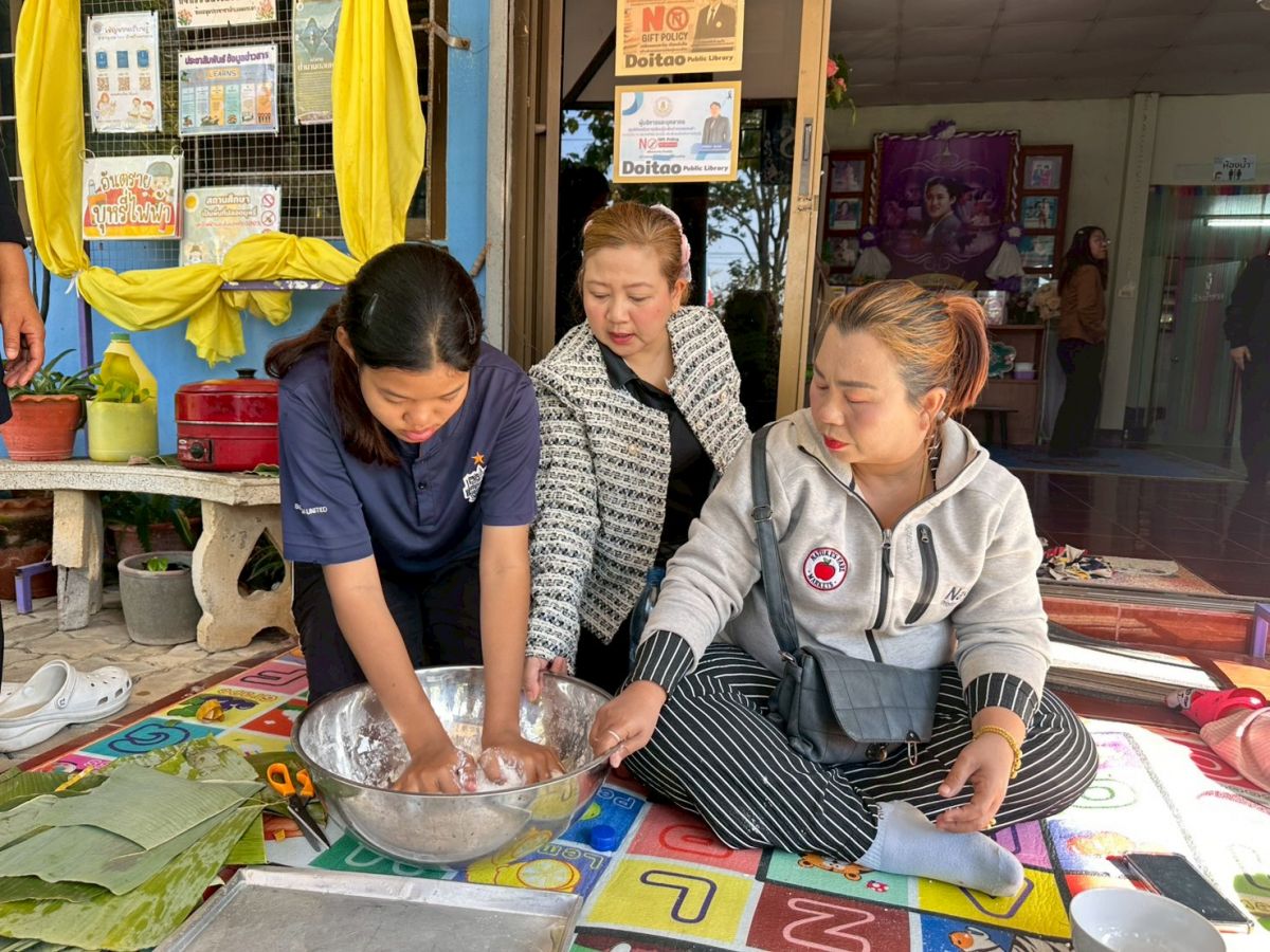 ได้ลงมือฝึกปฏิบัติจริงในการทำ “ขนมป๊าดบ่า” ซึ่งเป็นขนมหวานที่เป็นอัตลักษณ์สำคัญในพื้นที่อำเภอดอยเต่า