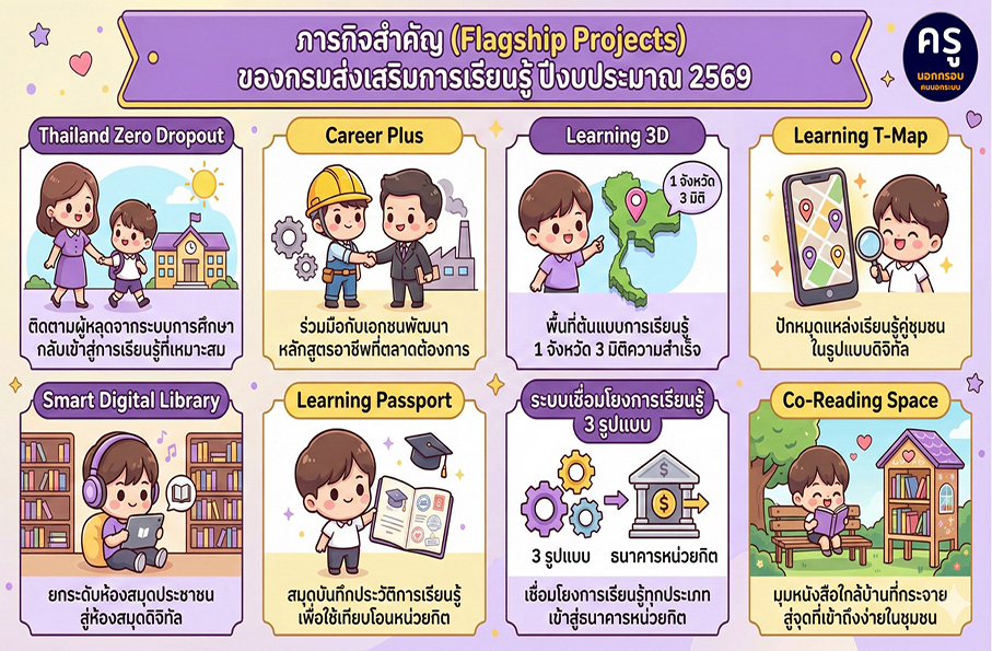 ภารกิจสำคัญ (Flagship) ตามจุดเน้นการดำเนินงานกรมส่งเสริมการเรียนรู้ ประจำปีงบประมาณ พ.ศ. 2569