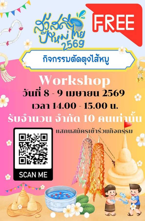 กิจกรรมดีๆ จากห้องสมุดประชาชนจังหวัดเชียงใหม่ เฉลิมพระเกียรติ 70 พรรษา สมเด็จพระกนิษฐาธิราชเจ้า กรมสมเด็จพระเทพรัตนราชสุดาฯ สยามบรมราชกุมารี เชิญร่วมกิจกรรม Workshop การตัดตุงไส้หมูแบบล้านนา ระหว่างวันที่ 8 - 9 เมษายน 2569 เวลา 14.00 - 15.00 น. ณ ห้องสมุดประชาชนจังหวัดเชียงใหม่ เฉลิมพระเกียรติ 70 พรรษา สมเด็จพระกนิษฐาธิราชเจ้ากรมสมเด็จพระเทพรัตนราชสุดาฯ สยามบรมราชกุมารี