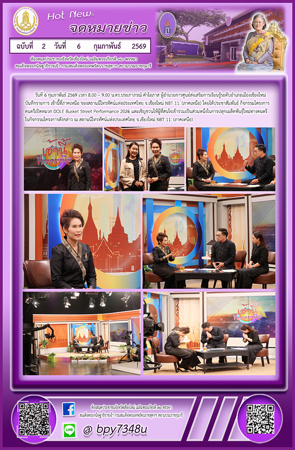 วันที่ 6 กุมภาพันธ์ 2569 เวลา 8.00 – 9.00 น.ดร.ประภาภรณ์ คำโอภาส ผู้อำนวยการศูนย์ส่งเสริมการเรียนรู้ระดับอำเภอเมืองเชียงใหม่