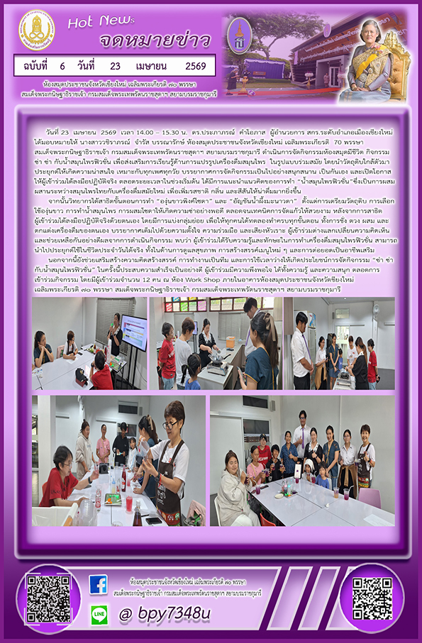 วันที่ 23 เมษายน 2569 เวลา 14.00 – 15.30 น. ดร.ประภาภรณ์ คำโอภาส ผู้อำนวยการ สกร.ระดับอำเภอเมืองเชียงใหม่
