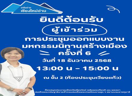 ห้องสมุดประชาชนจังหวัดเชียงใหม่ ขอเชิญชวนทุกท่านร่วมกิจกรรมส่งเสริมการเรียนรู้ผ่านแบบทดสอบออนไลน์ กับห้องสมุดประชาชนจังหวัดเชียงใหม่ เข้าชม : [37]