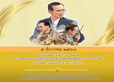วันที่ 5 ธันวาคม 2568 วันคล้ายวันพระบรมราชสมภพพระบาทสมเด็จพระบรมชนกาธิเบศร มหาภูมิพลอดุลยเดชมหาราช บรมนาถบพิตร วันชาติไทย วันพ่อแห่งชาติ และ วันดินโลก