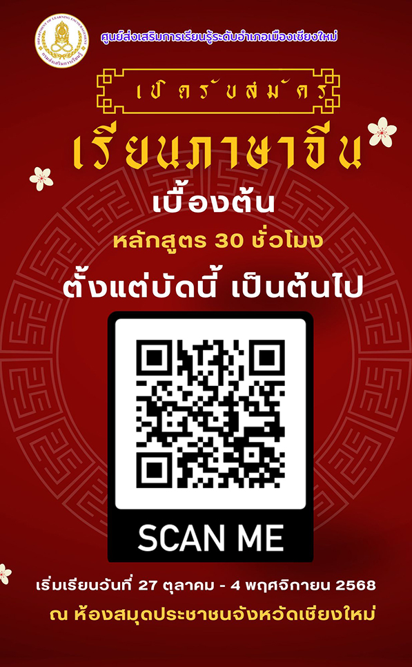 เปิดแล้ว .... จ้า ....... ตามคำเรียกร้อง ภาษาจีน( เบื้องต้น ) เปิดรับสมัครตั้งแต่บัดนี้ เริ่มเรียน ระหว่างวันที่ 27 ตุลาคม - 4 พฤศจิกายน 2568 หลักสูตร 30 ชั่วโมง ณ ห้องสมุดประชาชนจังหวัดเชียงใหม่