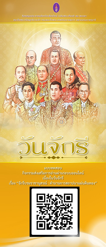 ห้องสมุดประชาชนจังหวัดเชียงใหม่เฉลิมพระเกียรติ 70 พรรษา สมเด็จพระกนิษฐาธิราชเจ้า กรมสมเด็จพระเทพรัตนราชสุดา ฯ สยามบรมราชกุมารี 📣 ขอเชิญเด็ก เยาวชน นักศึกษาศูนย์ส่งเสริมการเรียนรู้ระดับอำเภอเมืองเชียงใหม่ และประชาชนทุกท่านเข้าร่วมกิจกรรมส่งเสริมการอ่านออนไลน์ เรื่อง จักรีบรมราชานุสรณ์: ตำนานการสถาปนาแผ่นดินทอง ร่วมทำแบบทดสอบความรู้หลังการอ่านเพื่อรับเกียรติบัตร✨สำหรับผู้อ่านที่สามารถทำคะแนนได้มากกว่า 70 % ขึ้นไป เกียรติบัตรจะถูกส่งไปยังอีเมลที่ลงทะเบียนไว้