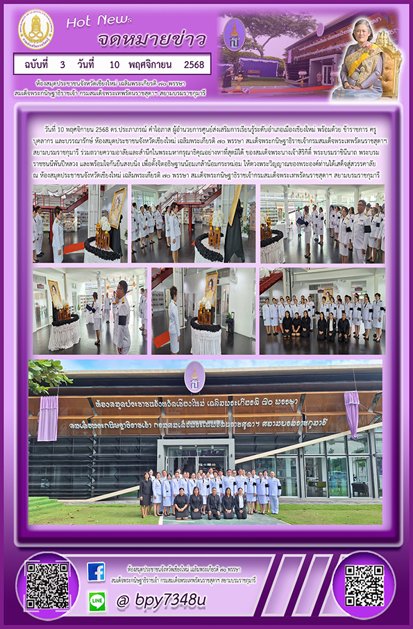 ณ ห้องสมุดประชาชนจังหวัดเชียงใหม่ เฉลิมพระเกียรติ ๗๐ พรรษา สมเด็จพระกนิษฐาธิราชเจ้ากรมสมเด็จพระเทพรัตนราชสุดาฯ สยามบรมราชกุมารี